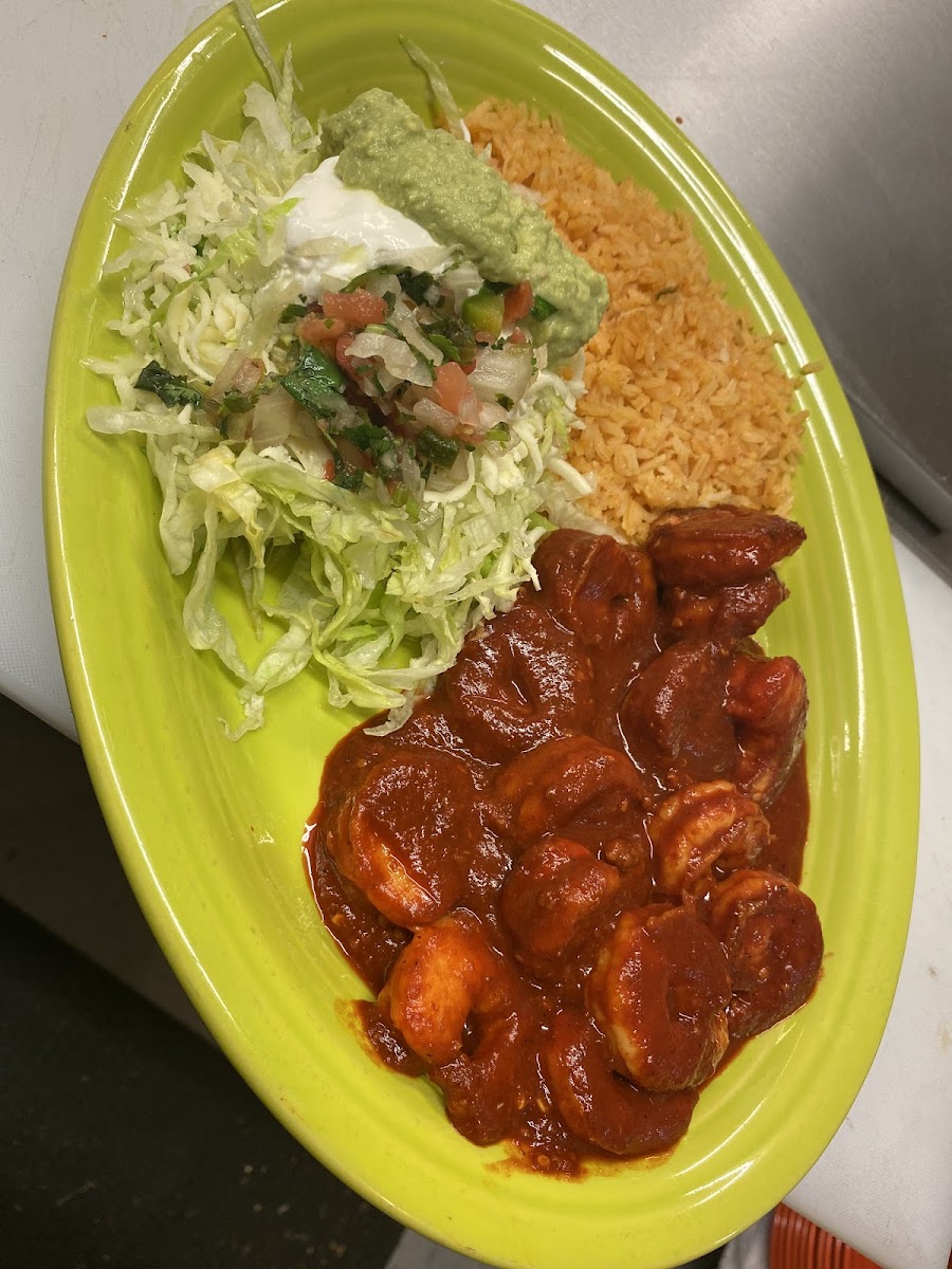 Two enchiladas served with rice and beans, special enchilada sauce and cheese.