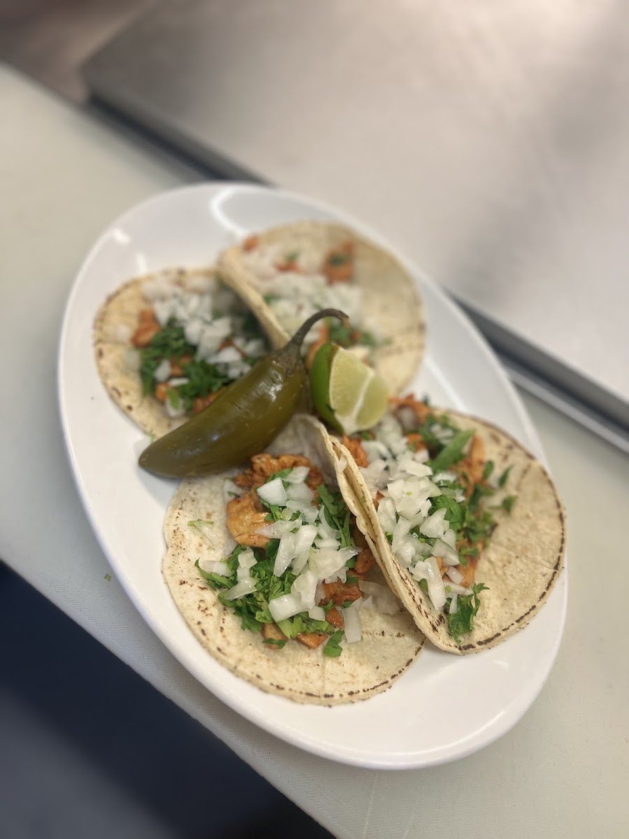 Two beef or chicken hard or soft tacos served with rice and beans.